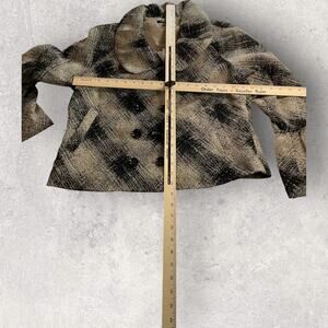 Samuel Dong Women’s L Beige Black Abstract Print Double Breasted Jacket