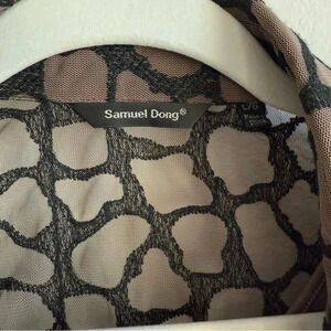 Samuel Dong Women’s Lace Textured Collared Button Down Long Sleeve w/Camisole L