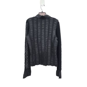 Samuel Dong Women's Retro Textured Crinkle Button Front Lightweight Top - L