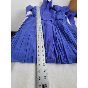Samuel Dong Womens Ruffle Trim Pleated Trench Coat Cobalt Large New