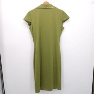 Samuel Dong Zipper Ruffle Midi Sheath Dress Sleeveless Zip Front Stretch Green Large. Great condition, no flaws or odors.
