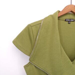 Samuel Dong Zipper Ruffle Midi Sheath Dress Sleeveless Zip Front Stretch Green L