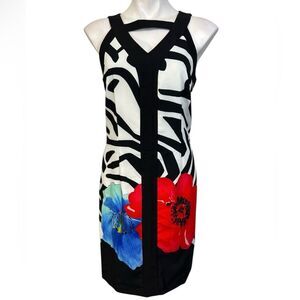 Samuel Dong dress M black white multi sleeveless knee length office business