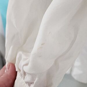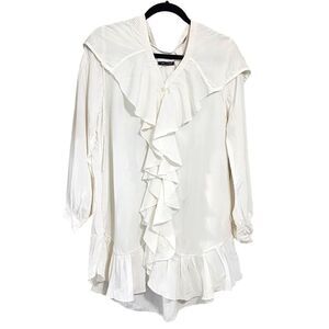 Samuel Dong white ruffled button front hooded tunic blouse Victorian Renaissa M