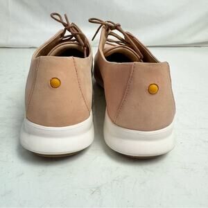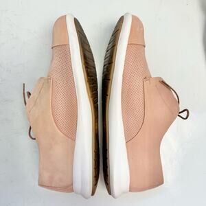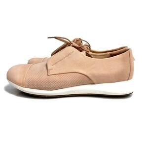 Excellent used condition! Blush pink suede leather loafers. Cap toe in an almond shape with stretchy laces. Derby style with a white cushioned midsole. This is a brand known for craftsmanship and comfort.