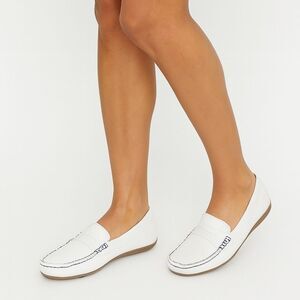 Samuel Hubbard Wm’s Sz 7 White Black Stitched Free Spirit Driving Moccasin Shoes