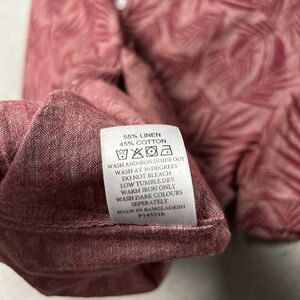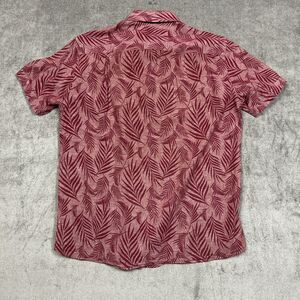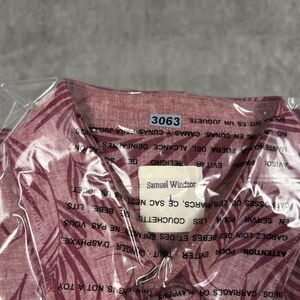 Samuel Windsor Shirt Mens Linen Blend Button Up Large Red Chambray Leaves Hawaii