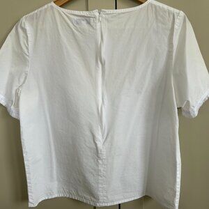Samuji white cotton zip-up top with sleeve detail. Has some slight discoloration (would probably wash out).