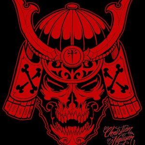 Samurai Skull Men's Custom Tattoo Art Black & Red Tee S-M-L-XL-2XL NWT