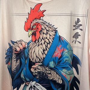 Samurai Warrior Fighting Rooster Cocky anime Japanese stretch print T shirt M