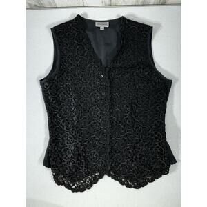 San Andre 1993 Womens Black Lace Front Button Up Vest Size 10 (Medium) Vintage