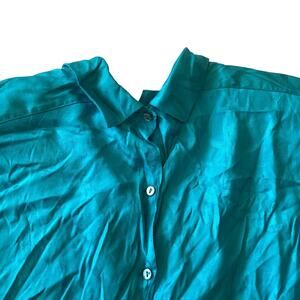 Cerulean blue satin blouse by San Andre New York in good preowned condition. No flaws.
