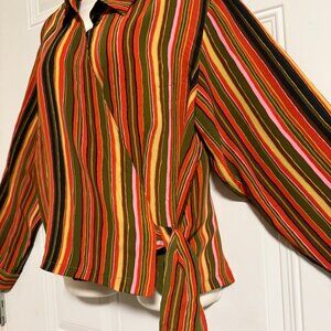 San Andre Striped Multicolor Button-Up Blouse SZ 14 Sophisticated Chic Goblincor