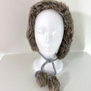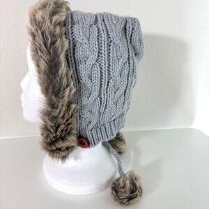San Diego Hat Co Kid Cable Knit Beanie Pom Pom Neck Tie Size 5-7 yrs Winter Gray