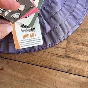 Brand new with tag kids sun hat with 50 spf from San Diego hat company. Light/faded Purple grosgrain ribbon packable and lightweight. Retail is over $30.