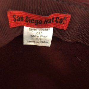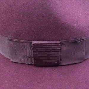 Classic wide brim fedora with a matching grosgrain ribbon. In a gorgeous wine/burgundy color.