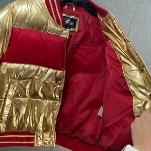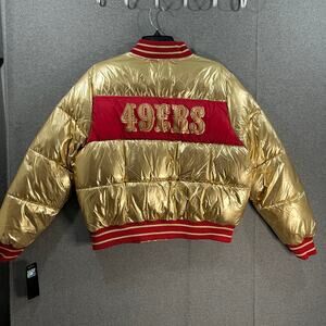 San Francisco 49ERS Women Puffer Jacket Gold/Red Light weight Size L