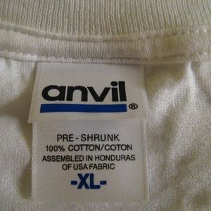 Garment Label: "Anvil. Pre Shrunk 100% Cotton. Assembled in Honduras Of USA Fabric. XL."