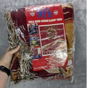 San Francisco 49ers Football blanket. NFL. Triple Woven Jacquard Throw Blanket. 50 x 60" with fringe and the original plastic zipper pouch. There is something brown on the back of the insert, photographed. Made in the USA and officially licensed. The blanket is in great condition and I don't see any blemishes. See photos for details.