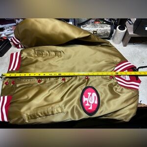 Crafted in the United States, this size medium jacket is perfect for fans who want to represent their favorite team in style. Whether you're heading to the game or just want to show off your love for the San Francisco 49ers, this jacket is the perfect choice. Get yours today and show your support for the team!