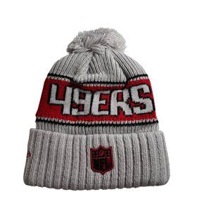 San Francisco 49ers New Era NFL Removeable Pom Knit Beanie Hat Gray Red Football