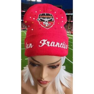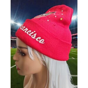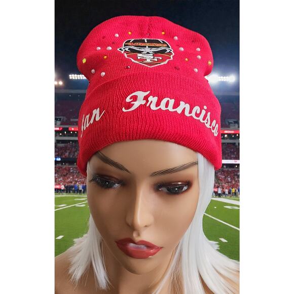 San Francisco 49ers Red Beanie design with Logo, Rhinestones and pearls