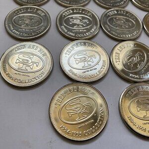 San Francisco 49ers then and now 1994-95 collectable coins 14 of 20 Lot #16 . 14 coins out of 20. Some coins might have some coating damage. Please see pictures for details