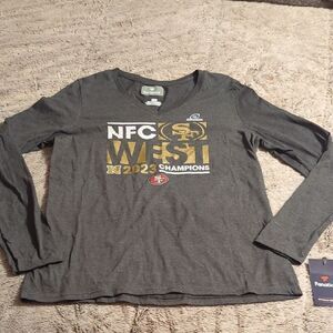 Celebrate in style with this gray NFC West Champions long sleeve shirt featuring gold and white graphics.