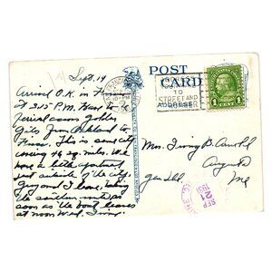 Vintage postcard featuring an aeroplane view of Lower Market Street and Ferry Building in San Francisco. Circa 1913, with postmark and original stamp. Aerograph Co. print.