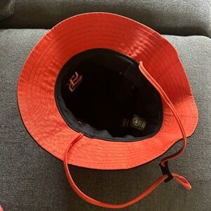 Showcase your unwavering San Francisco Giants fandom by wearing this officially licensed bucket hat from '47. The relaxed fit and embroidered four vent holes helps keep you comfy while the visor protects you from harsh UV rays. Embroidered team SF logo in orange on the front are perfect for representing the San Francisco Giants any day of the week. It also has an adjustable chin strap with leather toggle for those windy days at the park. Worn only a few times, so in excellent condition. Ships very quickly (usually the next day) from my smoke-free, pet-free home.