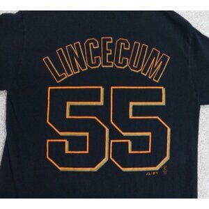 Description: Pre-Owned. 2010 T-Shirt (15 years old, almost vintage). Has light wear on fabric, light cracking on letters, light fading on fabric. Overall, still in good condtion. Short Sleeves. Giants logo at front. Tim Lincecum and jersey number 55 at back.