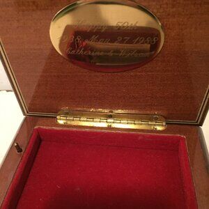 San Francisco Music Box Co 5” Burl Wood w/Key, Inscribed Anniversary Gift
