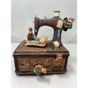 San Francisco Music Box Co Animated Sewing Machine Bears Buttons And Bows HTF