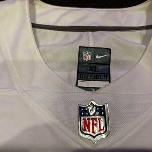 The product is a San Francisco 49ers jersey featuring quarterback Trey Lance in size XL-2XL fully stitched and officially licensed by Nike. This on-field jersey is designed for men and is in the team's signature white color. It commemorates the 75th anniversary of the team and is perfect for fans looking to show their support during the regular season of the National Football League.