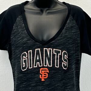 San Francisco SF Giants Womens T Shirt New Era MLB Baseball V Neck Short Sleeve Black XL X-Large Graphic Tee