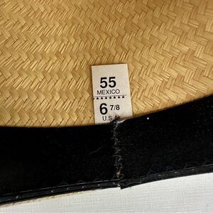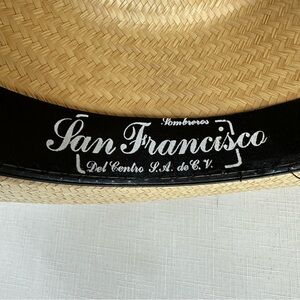 San Francisco Size 6 7/8 Made in Mexico Straw Cowboy Hat in good preowned condition. Slight bend on brim