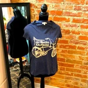 Navy V-neck Tee. Slim fit. Fits more like a Medium. Worn once. Love this old school vibe!