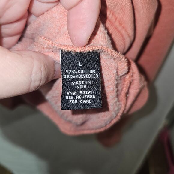 San Francisco Work Shirts Hoodie, embroidered with Los Angeles across the chest, size L, in great condition, peach color, very soft and comfortable.