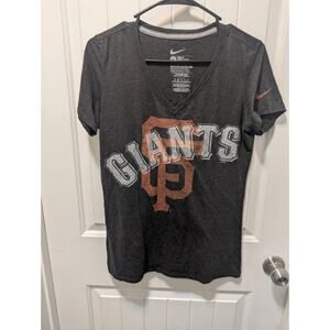 San Fransisco Giants Shirt Womens Gray SF Logo Nike V-Neck Slim Fit Size L MLB