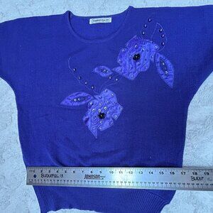 San Huwn Jean Jir Women's Knitted Wool Beaded Sequined Sweater Top Stretch Blue