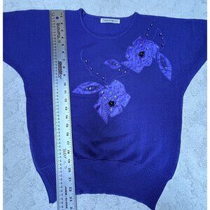 San Huwn Jean Jir Womens Knitted Wool Beaded Sequined Sweater Top Stretch Blue