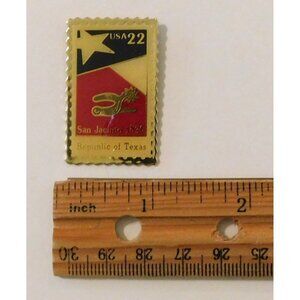 San Jacinto 1836 Republic Of Texas USA 22 Pin Stamp Shaped Gold Enamel Lapel Pin