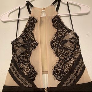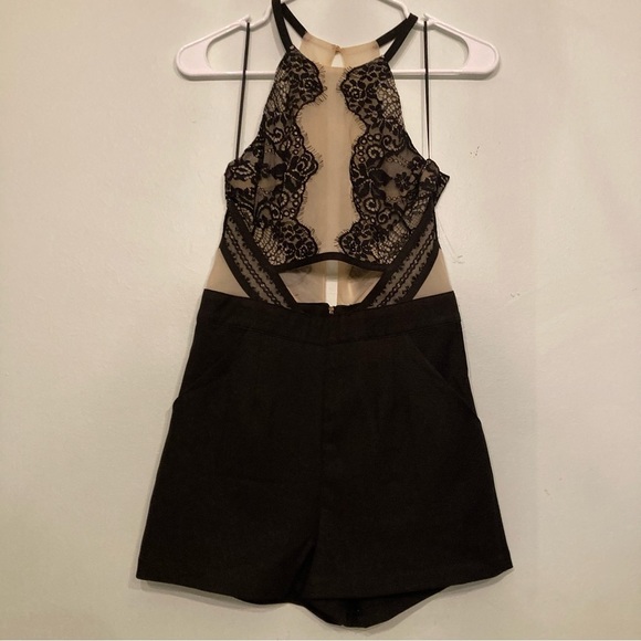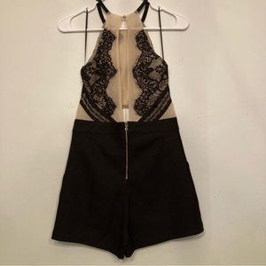 San Joy Black and Tan lace sleeveless halter top short romper size small