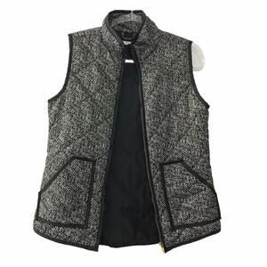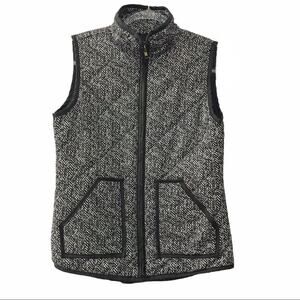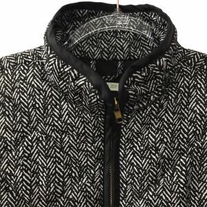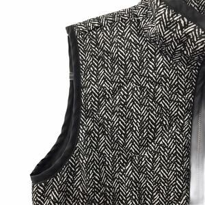 San Joy Quilted Zip Front Vest Black & White Herringbone Print w/ Pockets Small