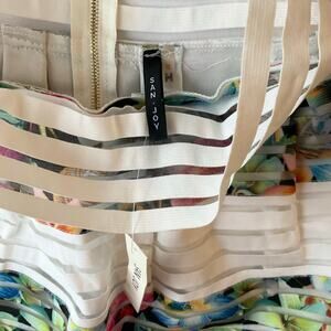 San Joy Women Semi Sheer Sexy Floral Mini Skirt Size M, White & Multi Colored