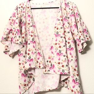San Lorenzo Bikinis beach summer cover up floral cardigan. Mermaid dreams water lily pink and white multicolor flower print, one size. In good used condition.