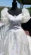 Gorgeous vintage wedding dress and matching veil (vintage size 12 = fit is SMALL) color may vary due to lighting, bounce has exquisite embroidery lace appliqué sequins and beads, soft 80’s90’s fluffy romantic sleeves which can be worn on or off the shoulder, back zipper hook closure large bow, long train with lace appliqué and layers of ruffles attachable hooks to shorten the train (minor wear under/around may require dry cleaning color is off white) otherwise in great preloved condition smoke/pet free home