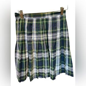 San Moire 90s Vintage Plaid Skirt Green Mini Length Size 12 Vintage School