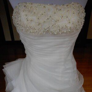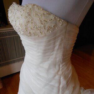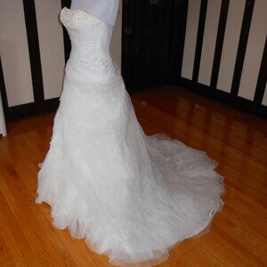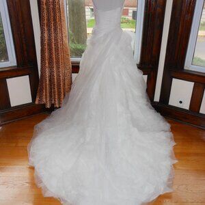 This is an Authentic ST PATRICK by PRONOVIAS Bridal Wedding Dress Gown. It has a gorgeous A line style with a fabulous long train. This dress is brand new in great condition with the original label and tags. It was never worn.
