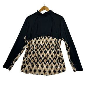 San Soleil Shirt Women XL UPF 50 Black Leopard Cheetah So Cool Zip Pullover